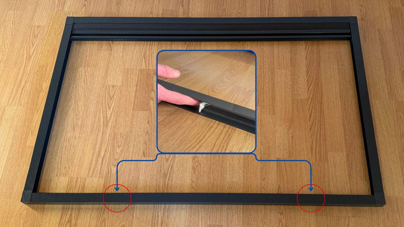 Assemble each connector corner on the frame as shown on the picture to the right!