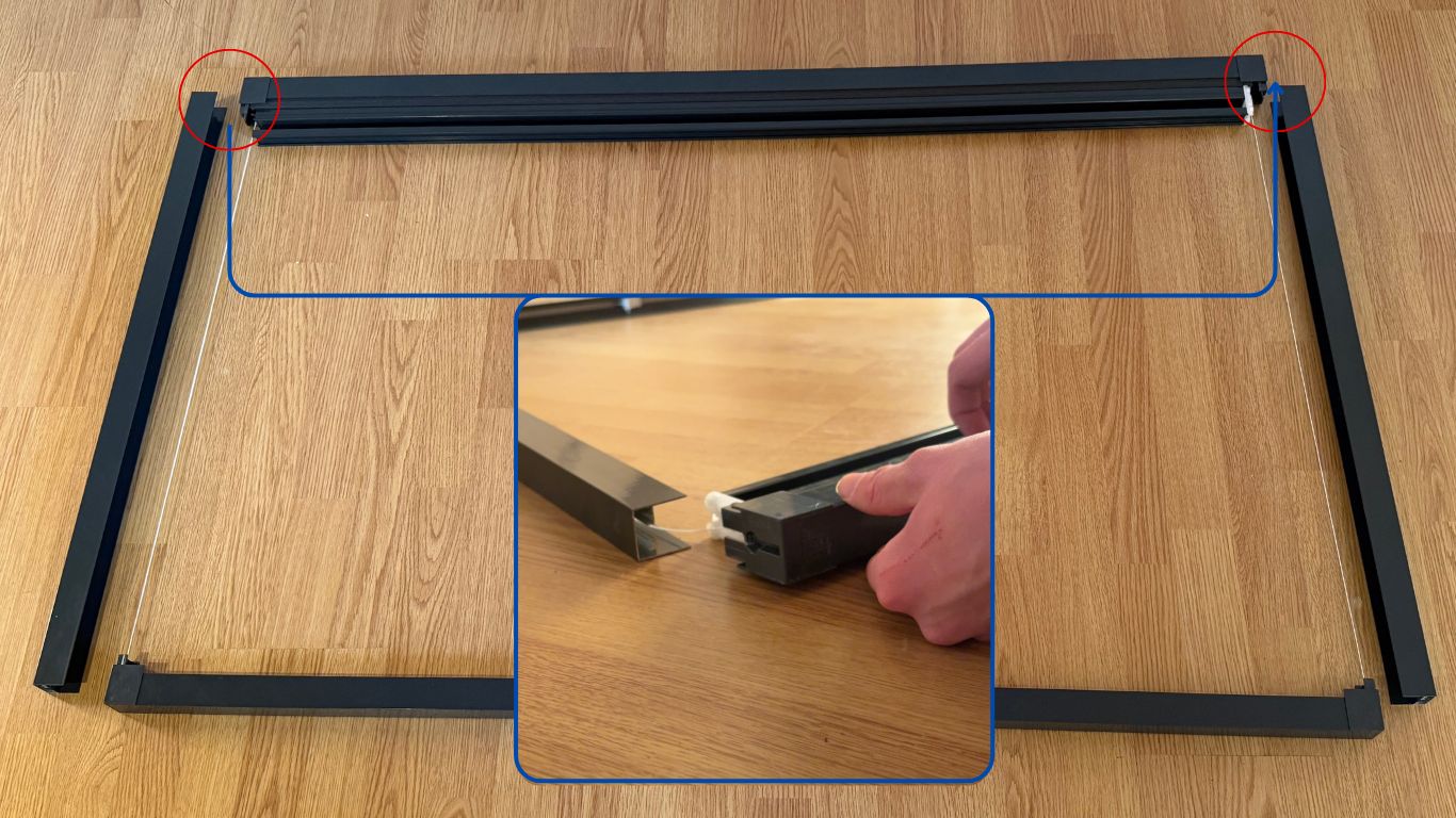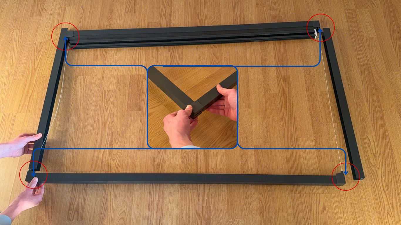 Now on each side of the frame begin to tighten the tension strings to ensure your frame stays connected securely